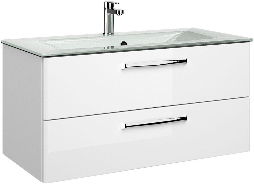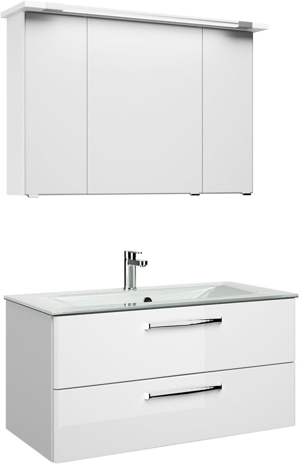 Badmöbel-Set Trentino 2-teilig Glas-Waschtisch LED weiß-hochglanz