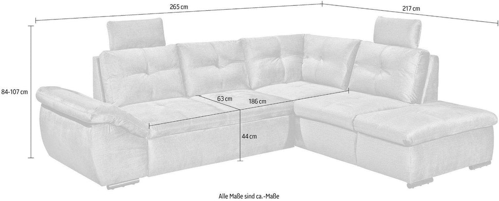 Ecksofas Alija L-Form inkl. Schlaffunktion und Bettkasten grau