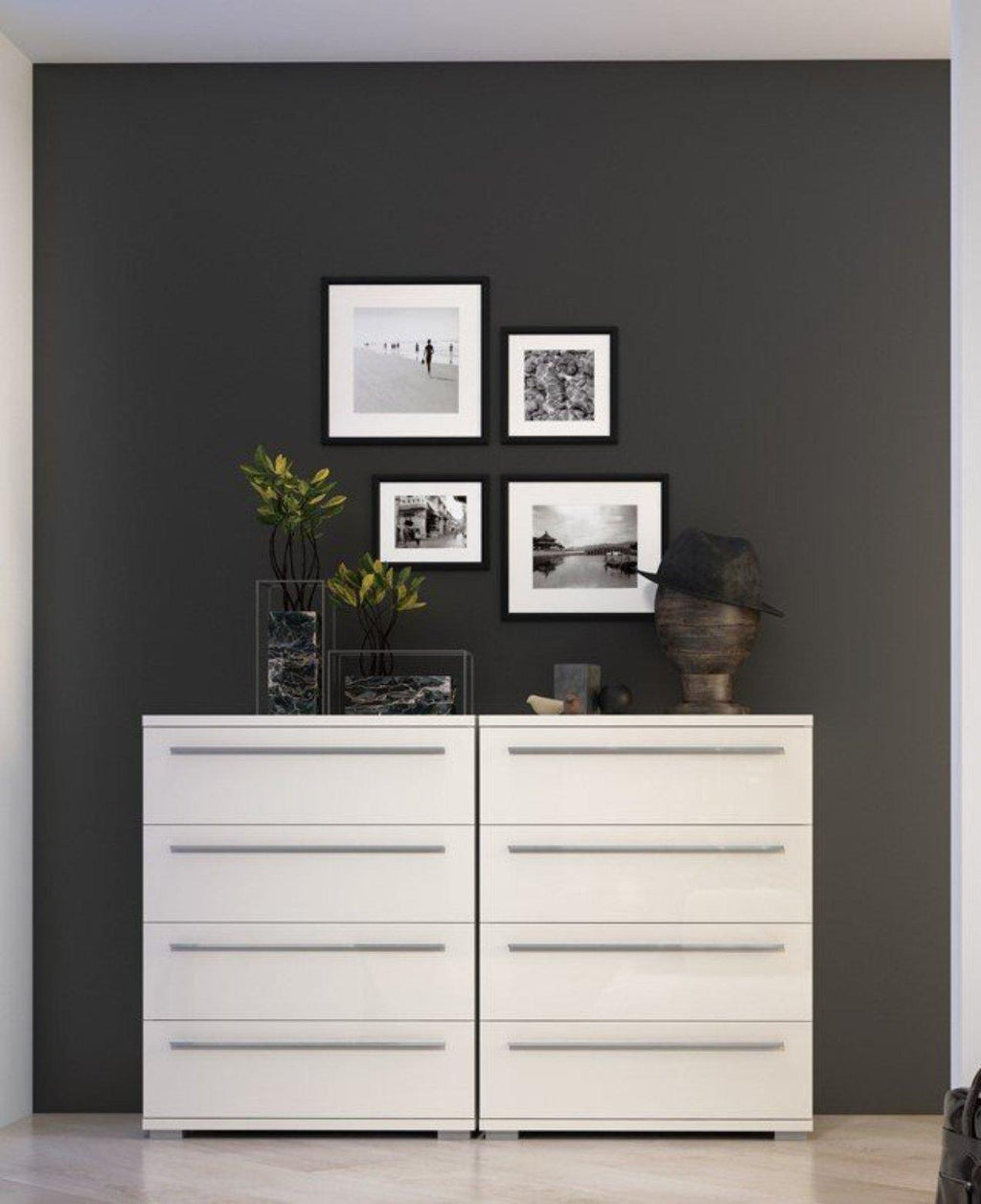 Schubladenkommode Piano, beige Hochglanz